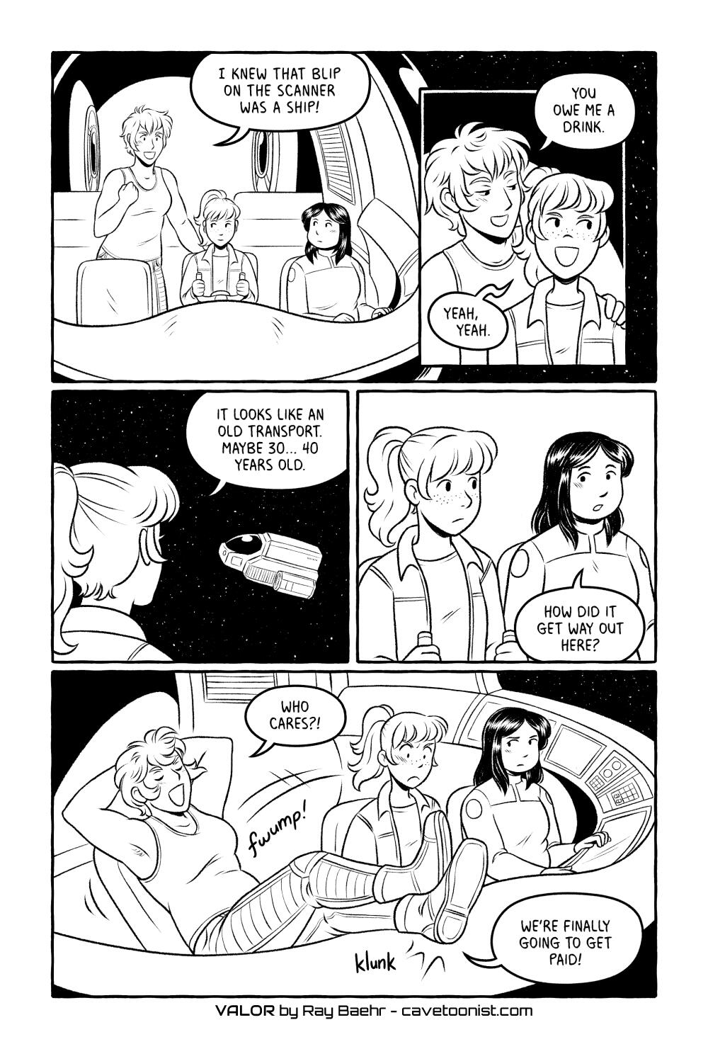 A sci-fi comic about a team of salvage operators who grapple with what it means to be human after discovering an illegal humanoid robot abandoned on a derelict transport ship. If you'd like to support the comic and read new pages early you can do so by becoming a patron.